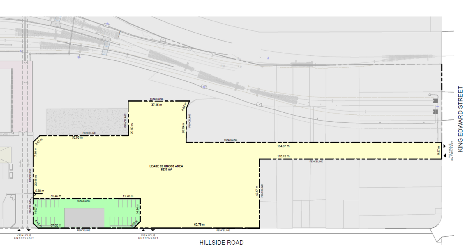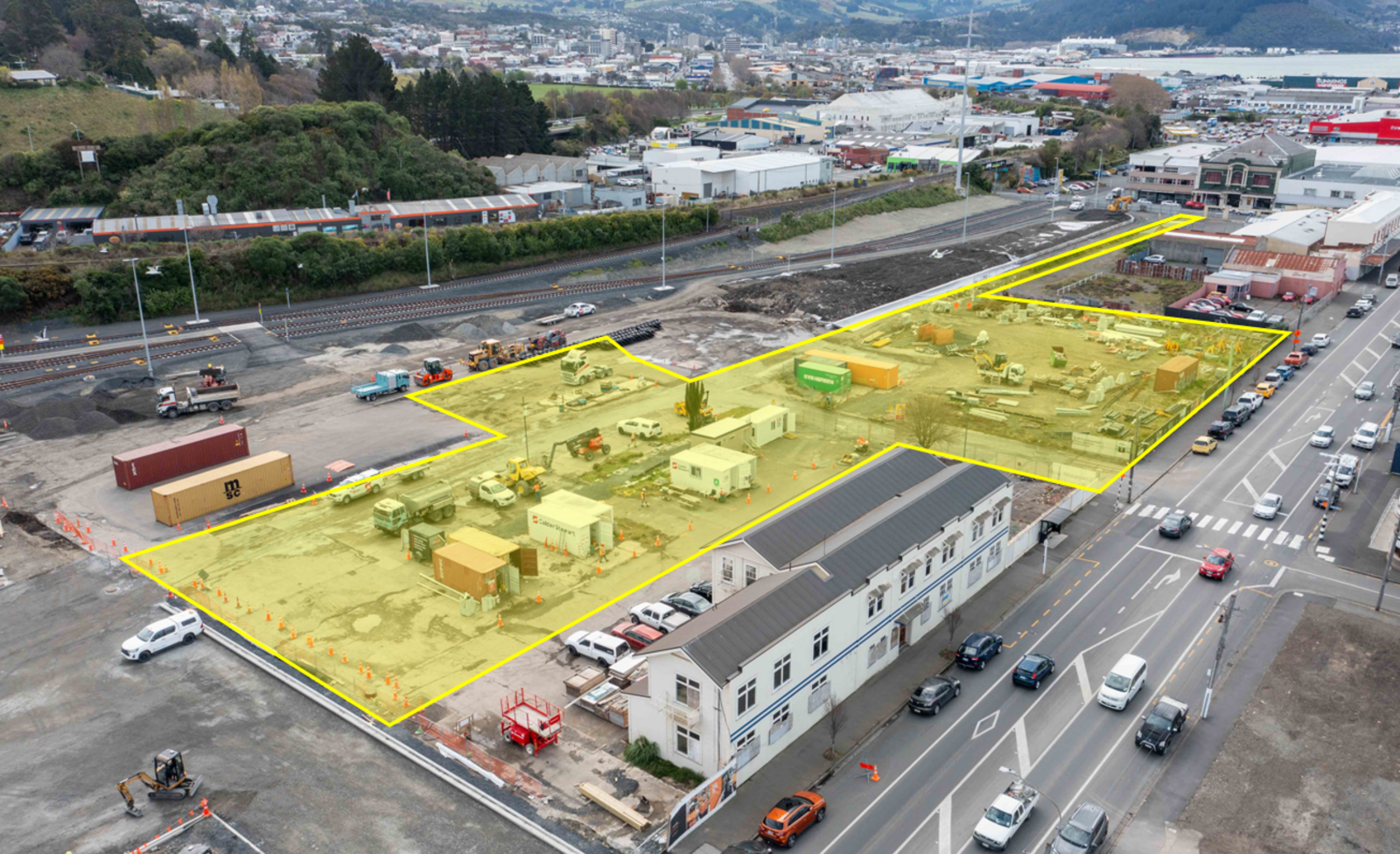 Surplus to requirements for Kiwirail, this yard is on the new Hillside site, and has access from Hillside Rd and King Edward St.