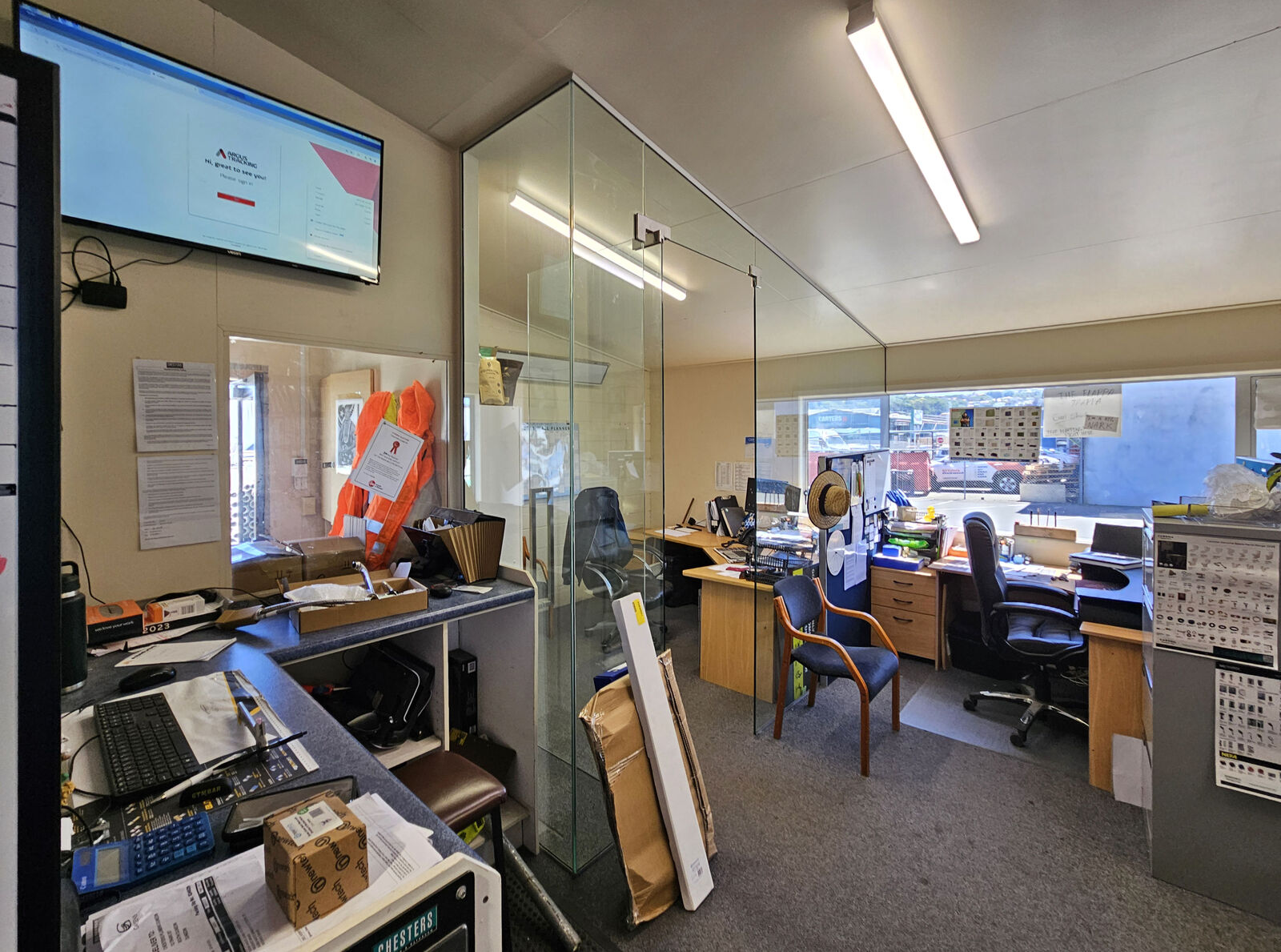 Has approx 63m2 showroom, 83m2 offices/amenities, 448m2 warehouse with good stud height, high truck doors, plenty of yard/parking, and potential to drive-thru if required.