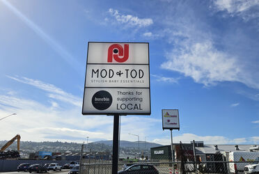 Shares a signage pylon to the regional arterial route Portsmouth Drive.